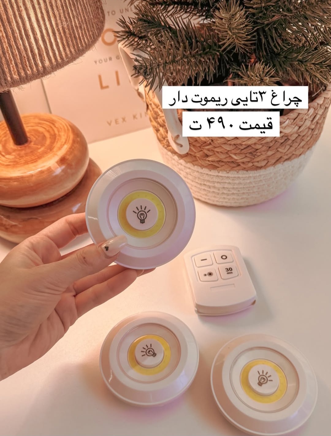 هر چراغ سه تا باطری نیم قلم میخوره هم با ریموت کنترل روشن میشه هم با لمس کردن خود چراغ پشتش چسب داره و به هرجایی که بخواین نصب میشه