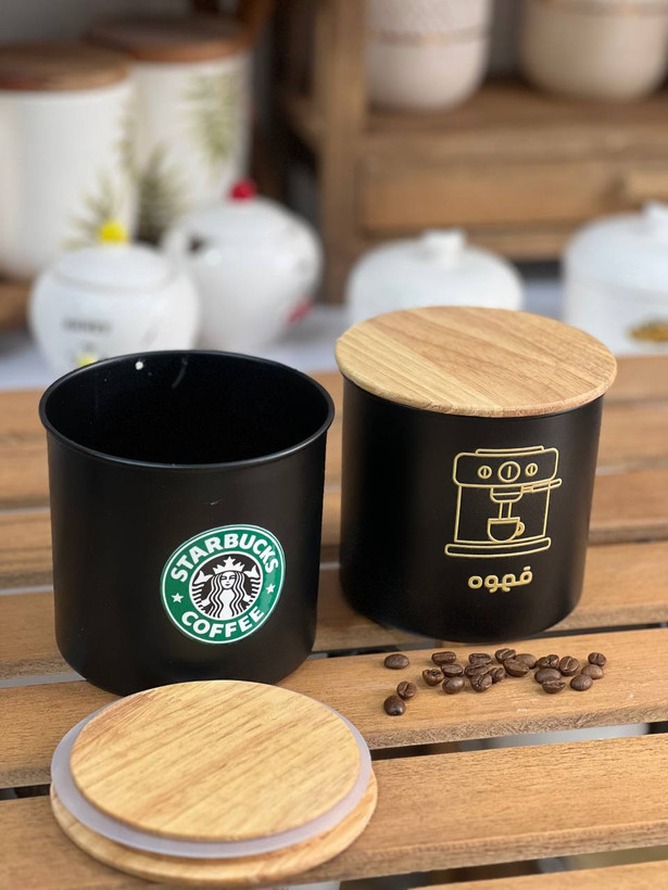 بانکه فلزی قهوه با درب چوبی